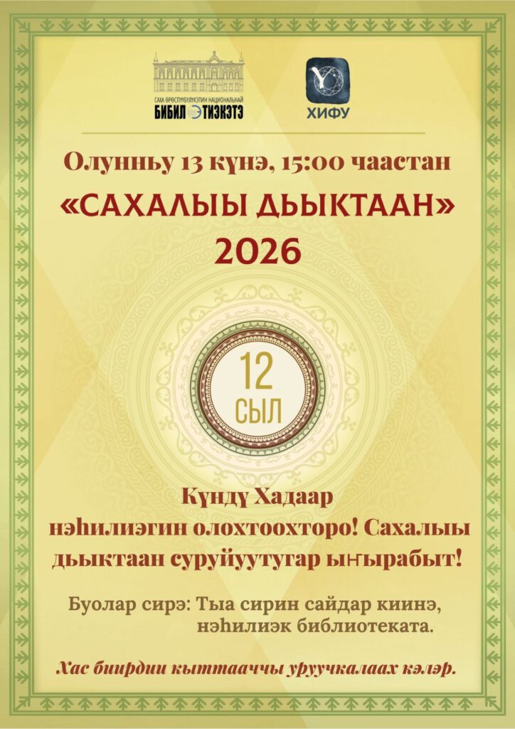 Олунньу 13 күнүгэр нэһилиэк библиотекатыгар Ийэ тыл, сурук-бичик күнүн көрсө сахалыы таба суруйуу үөрүйэҕин олохсутар, иҥэрэр сыаллаах 12 төгүлүн «САХАЛЫЫ ДЬЫКТААН-2026» аахсыйа ыытылынна. Дьыктааҥҥа Саха норуодунай суруйааччыта Д.К.Сивцев-Суорун Омоллоон «ЧҮӨЧЭЭСКИ» кэпсээниттэн быһа тардыы сурулунна.