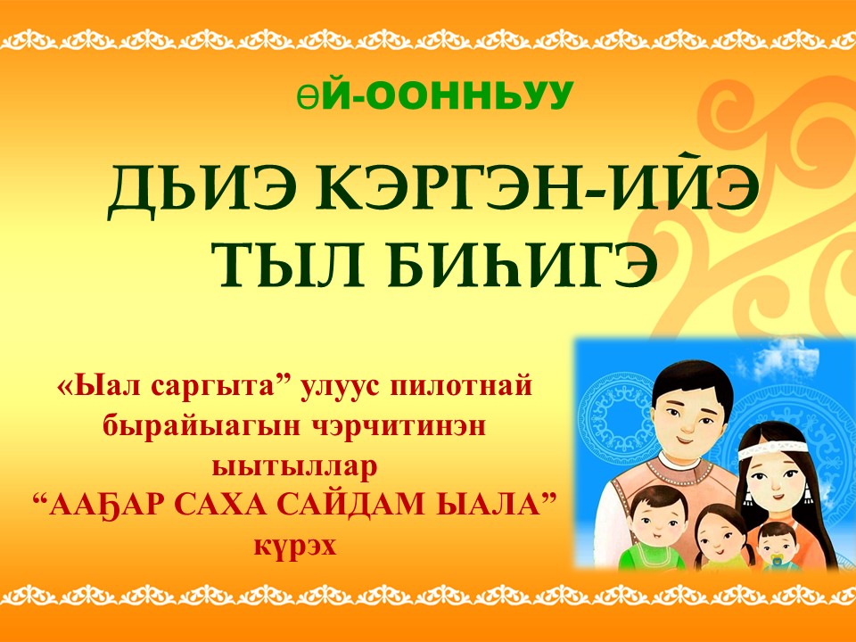 Бу күрэх сыл устата ыытыллар, дьиэ кэргэн бибилэтиэкэлэргэ сылдьан, сахалыы айымньылары, кинигэлэри ааҕан, ааҕыыга сыһыаннаах тэрээһиннэргэ, күрэхтэргэ кыттан, түмүктүүр күрэххэ сөбүлээн аахпыт саха суруйааччыларын айымньыларын ырытан, видеоролик оҥороллор. Кыбаарталга биирдэ уопсай тэрээһиннэр ыытыллаллар: 1- “Ааҕар саха сайдам ыала” күрэх. 2- Дьиэ кэргэн олимпиадата. 3 -Дьиэ кэргэттэргэ аналлаах маастар кылаастар 4 -Дьиэ кэргэнинэн сөбүлээн аахпыт айымньыларынан аудиозапись уһуллуута. Түмүктүүр тэрээһин видеоролик күрэҕэ.
